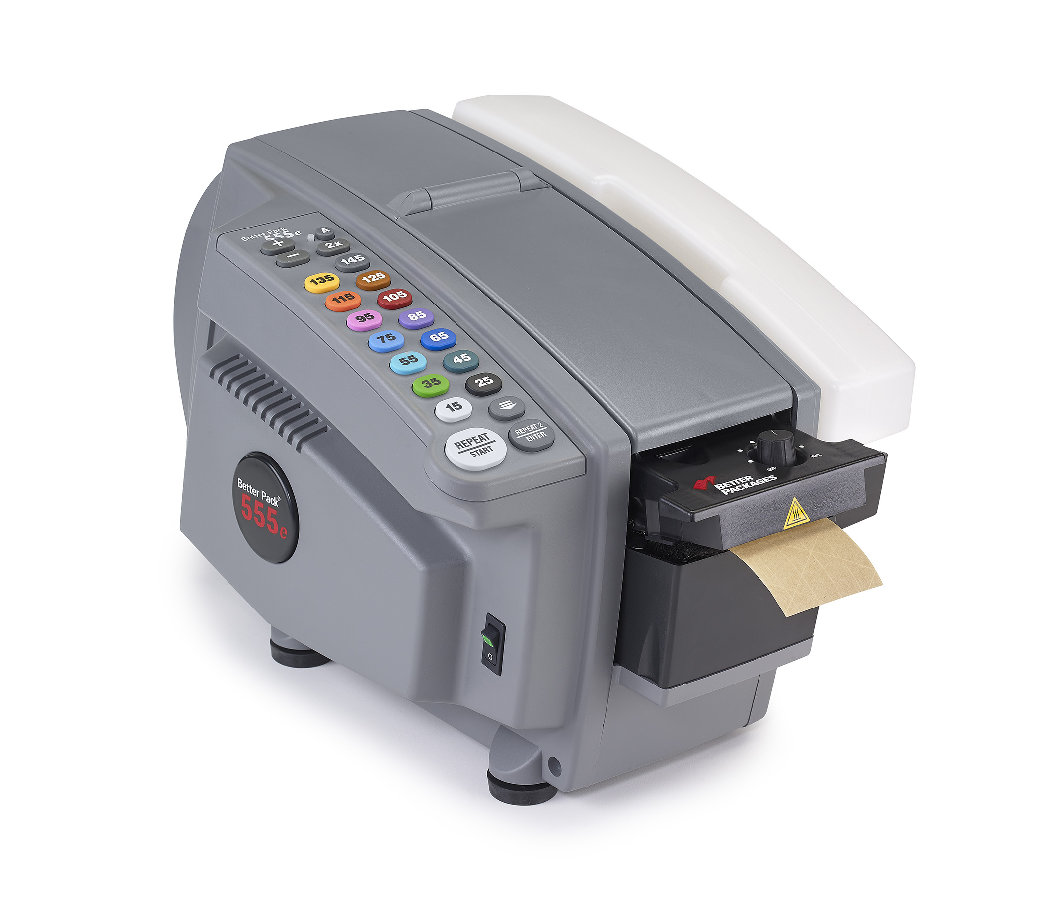 The “A” represents an Automatic Tape Advance feature, which means that once a piece of tape is removed from the dispenser, another automatically advances.  The Better Pack 555eFACM has the highest level of automation available from the Better Pack dispenser family. A microprocessor based control system can be interfaced with PC’s, printers, shipping systems, and foot pedals for the ultimate carton sealing solution.